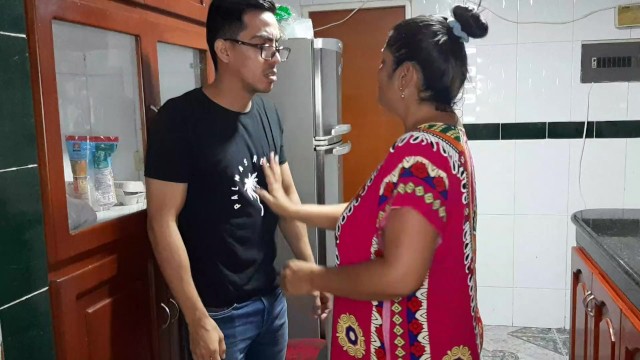 Молодой парень собирался пойти погулять с друзьями, вот только строгая мамка не собиралась его отпускать. Зрелая баба хотела для начала получить удовольствие, а уже потом отпустить сына из дома. Скромному парню в очках не оставалось ничего другого, как достать член из штанов и дать мамке отсосать. Толстая мамаша чмокала от кайфа, пока сосала член сына и нежно языком вылизывала ему яйца, даря ему удовольствие оральными ласками.